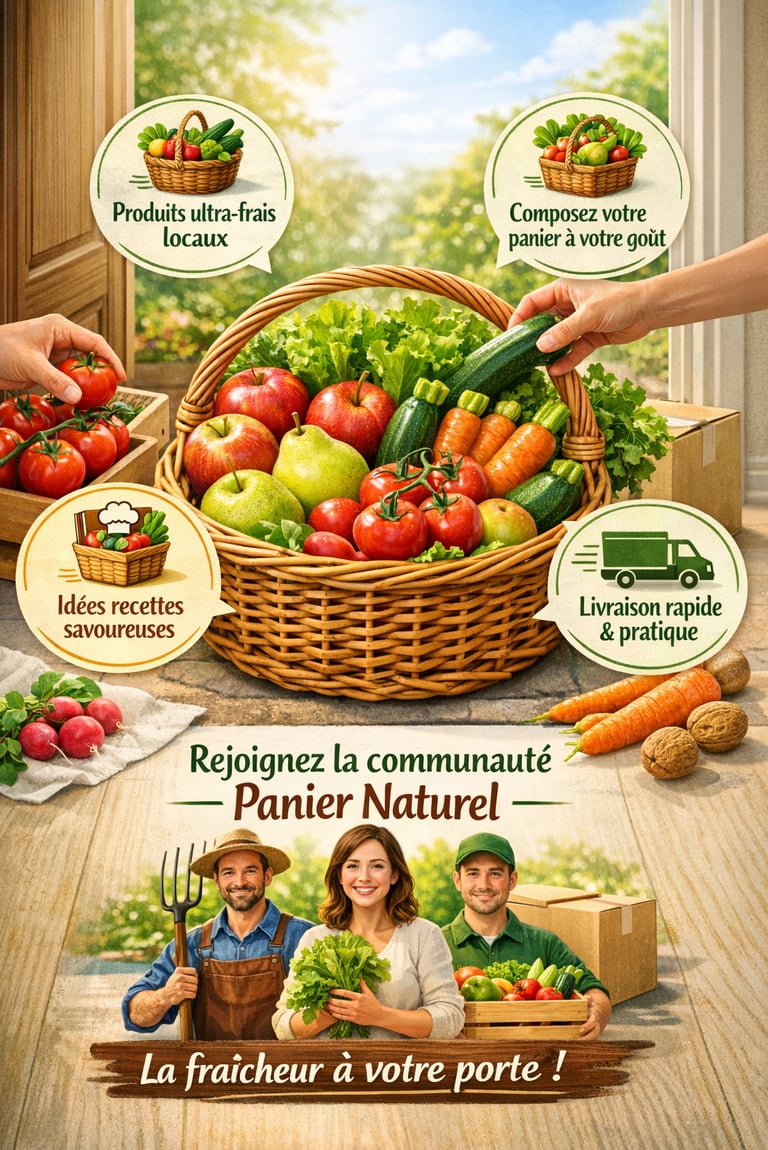 Votre panier est emballé proprement, dans un conditionnement premium et respectueux des produits. Nous assurons une livraison rapide, directement chez vous ou en point de retrait selon votre préférence. Chaque panier est manipulé avec précaution pour que tout arrive intact, frais et prêt à cuisiner.